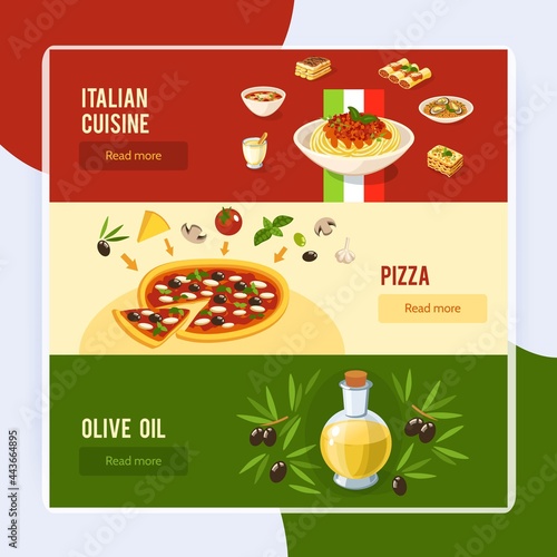 Экраны загрузки мобильных приложений. Итальянская кухня, еда, ризотто, салями, паста, тортеллини. Шаблон векторного баннера меню для разработки веб-сайтов и мобильных устройств. Плоская иллюстрация дизайна веб-сайта.