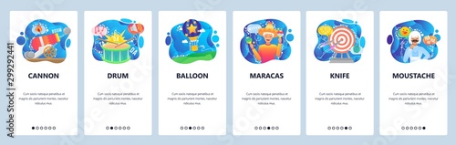 Экраны загрузки мобильных приложений. Спортивные значки, теннисная ракетка, брейк-пойнт. Шаблон векторного баннера меню для разработки веб-сайтов и мобильных устройств. Плоская иллюстрация дизайна веб-сайта.