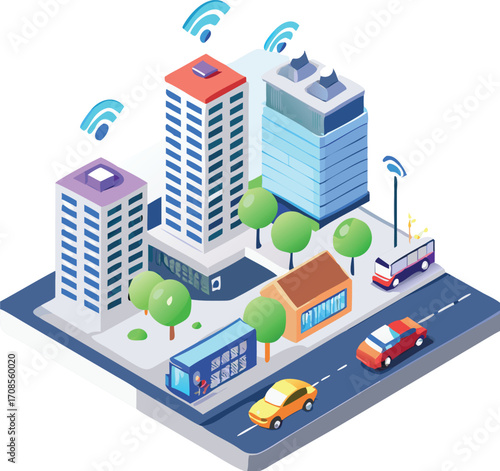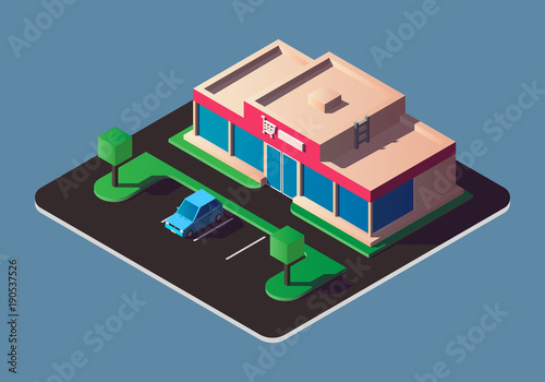 Векторная плоская 3d-изометрическая иллюстрация мобильного банкинга. Здание банка на экране смартфона. Использование мобильного устройства для совершения операций онлайн-банкинга элемент концептуального дизайна.