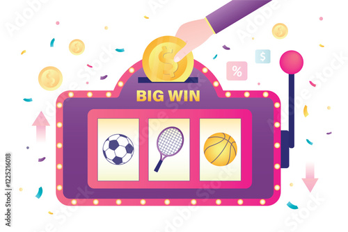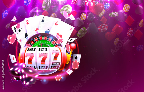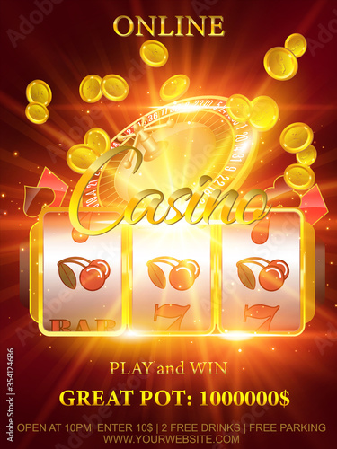 Шаблон дизайна баннера векторного плаката мобильного казино. Смартфон, колесо рулетки, игральные карты, игровые автоматы, фишки для покера, кости, золотые долларовые монеты и кубок-трофей. Концепция онлайн-казино.