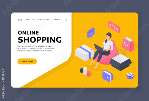 Шаблон веб-сайта целевой страницы мобильной навигации. Векторный изометрический смартфон с картой маршрута и PIN-кодом, чемоданы, турист держит компас. Смартфон с навигационным приложением. Концепция GPS.