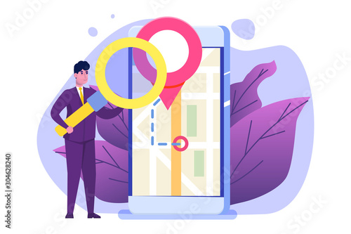 Служба ремонта мобильных телефонов, векторная иллюстрация дизайна в плоском стиле. Крошечные люди, профессиональные техники, ремонтирующие разбитый экран большого смартфона. Концепция ремонта и технического обслуживания мобильных телефонов.