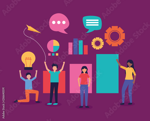 Векторная иллюстрация огромного планшета с поднятым вверх знаком руки на экране и крошечными символами, использующими портативные компьютеры. Концепция мобильных ИТ-устройств для веб-баннера, страницы веб-сайта и т.д.