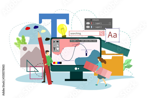 Услуги по разработке мобильных веб-сайтов векторная иллюстрация. Веб-разработка и дизайн бизнес-концепции веб-баннера, страницы веб-сайта, презентации и т.д.