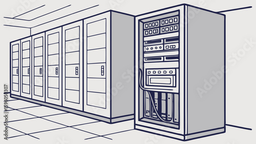 Современный шкаф, чертежи гардероба, плоская векторная иллюстрация. Услуги по дизайну мебели.