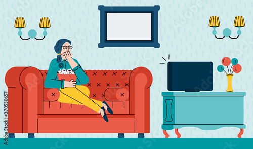 Векторная иллюстрация пары молодых мужчин и женщин, сидящих на диване в гостиной и использующих смартфон или мобильный телефон, ноутбук. Современные гаджеты для повседневной жизни концептуальный элемент дизайна в плоском стиле.