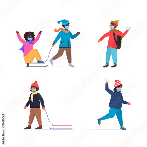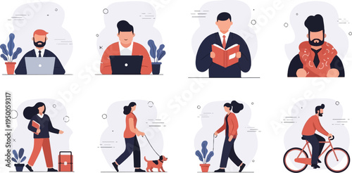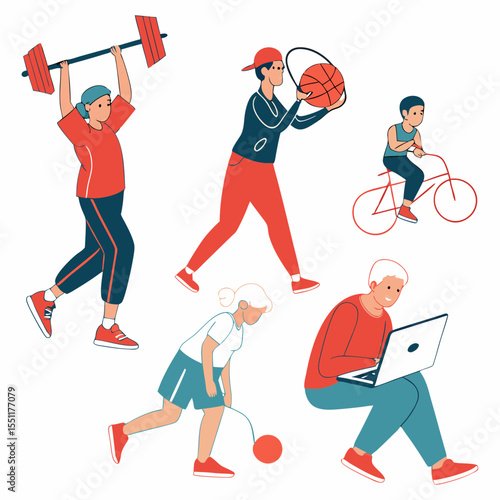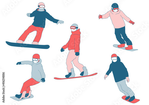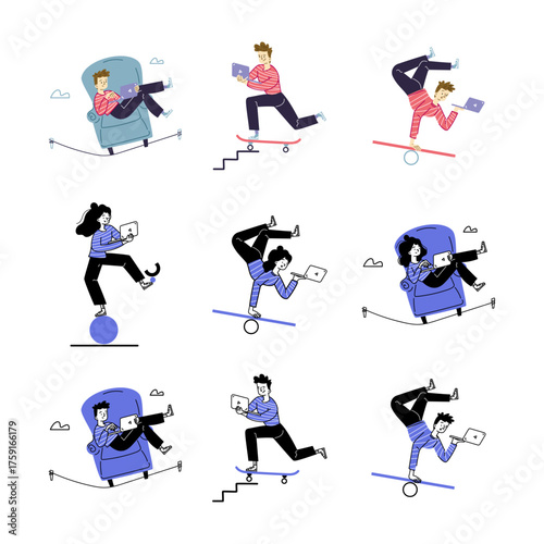 Современные городские мальчики и девочки-подростки на векторной иллюстрации на скейтборде. Набор изолированных мультяшных персонажей. Городские фигуристы развлекаются и делают трюки и трюки. Экстремальный вид спорта на коньках.