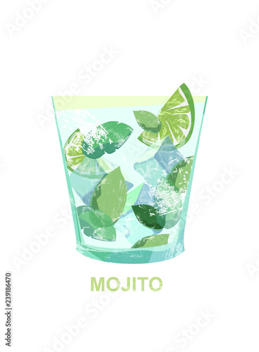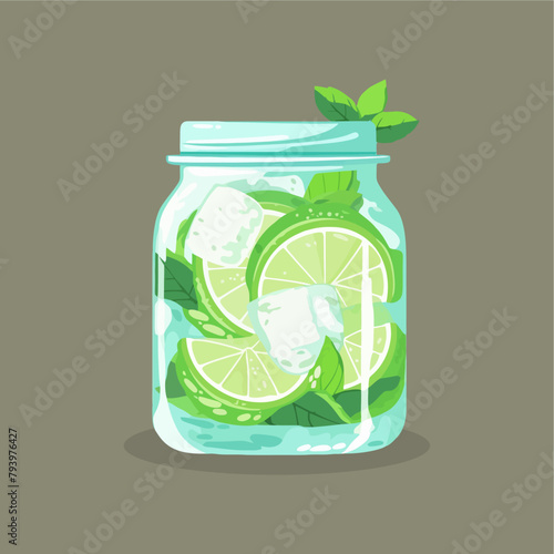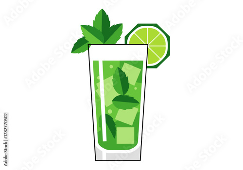 Значок коктейльного напитка. Мохито в стеклянном векторе. Барный напиток для освежения, выделенный на белом фоне