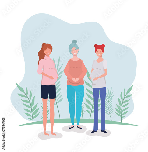 Две женщины-матери со своими детьми разговаривают друг с другом, векторная иллюстрация дизайна в плоском стиле. Молодые мамы гуляют, отдыхают, болтают в парке.
