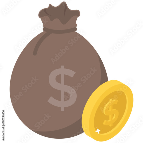Векторный значок денежного мешка, изолированный на белом фоне