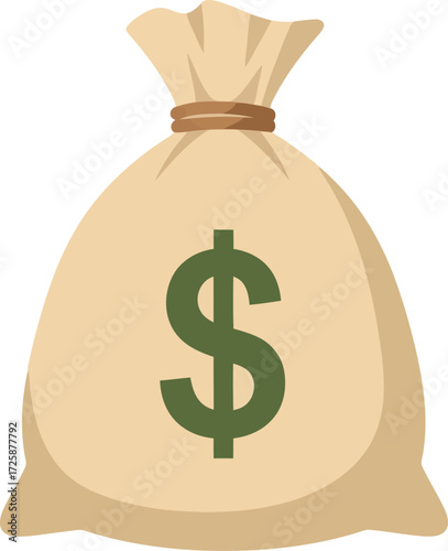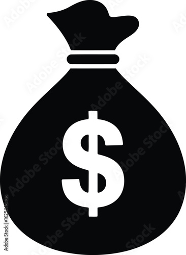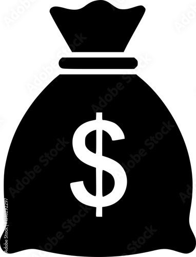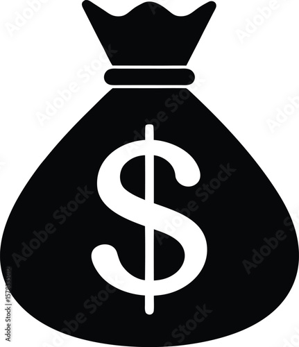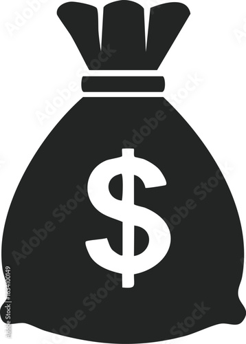 Значок денежного мешка. Векторный мешок с долларами, выделенный на белом фоне. Символ денежного мешка