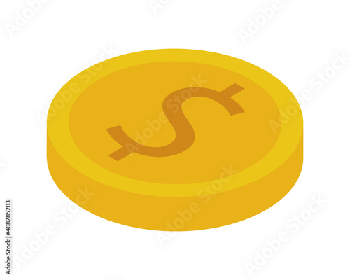 Векторная иконка денежной монеты. Дизайн денежных средств. Валюта банка. Финансовый символ. 3d-знак золотого доллара, выделенный на белом фоне
