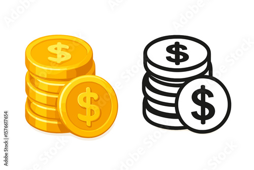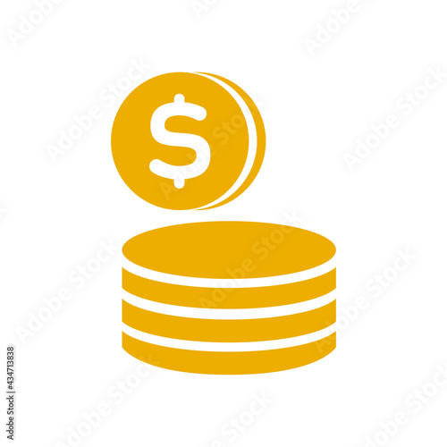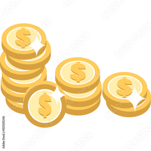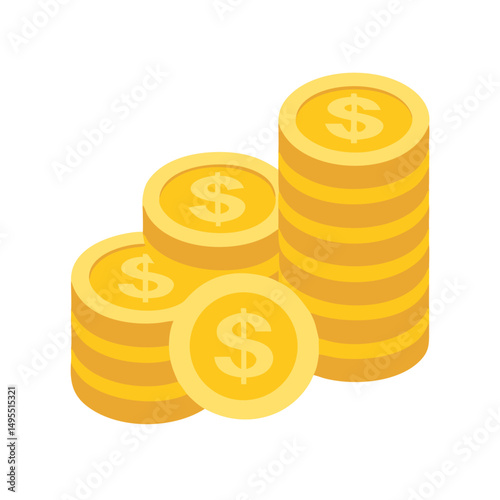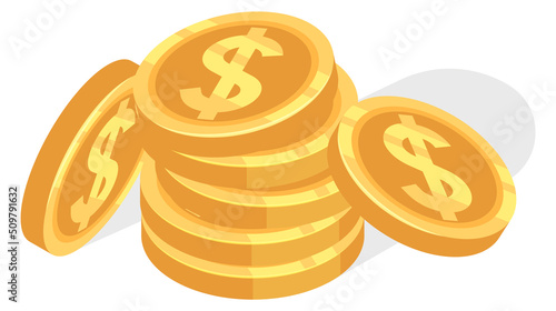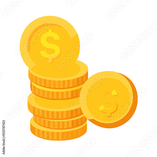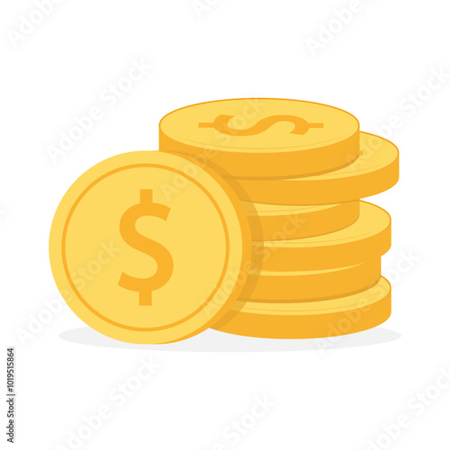Вектор стопки денег. Значок стопки золотых монет. Наличная валюта в виде золотого доллара, выделенная на белом фоне