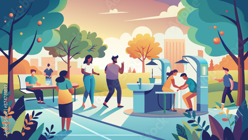 Денежное дерево и деловые люди собирают монеты, анализируют доходы, смотрят в телескоп, плоская векторная иллюстрация. Видение бизнеса, инвестиции, статистика, финансовый рост.
