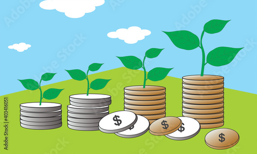 Денежное дерево, золотые слитки, денежные мешки, диаграмма со стрелками, плоская векторная изометрическая иллюстрация. Концепция инвестиций в золото.