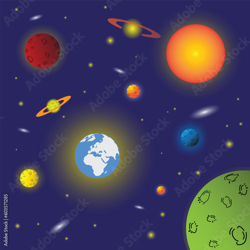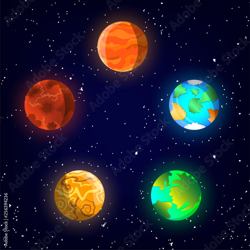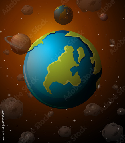 Набор значков фазы Луны. Векторная реалистичная иллюстрация планеты Земля и основных фаз Луны вокруг нее. Концепция всего цикла от новолуния до полнолуния.