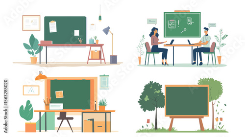 Векторная иллюстрация интерьера гостиной, молодая мать подает ужин, сын дарит цветы своей пожилой матери. Уход за детьми, воспитание и обслуживание пожилых родителей элементы дизайна в плоском стиле.
