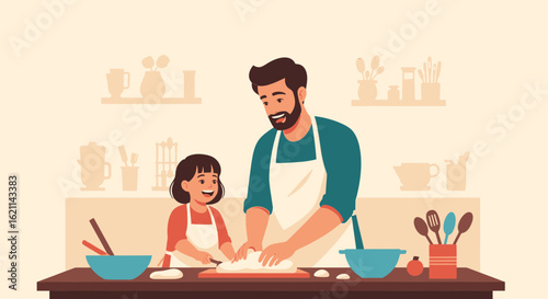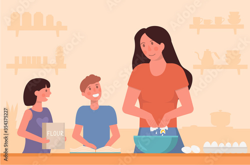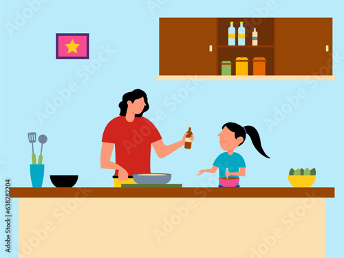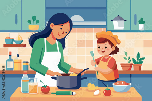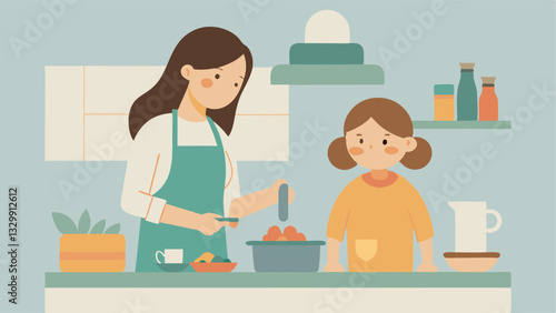 Мать учит дочь готовить векторную иконку, изолированную на белом фоне