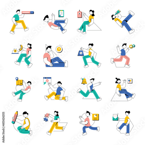 Специалисты по графике движения, набор мультяшных персонажей, векторная плоская изолированная иллюстрация. Талантливая и творческая команда профессионалов в области дизайна и маркетинга. Сотрудники студии анимации и моушн-графики.