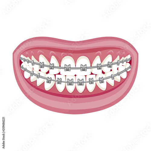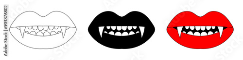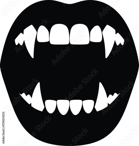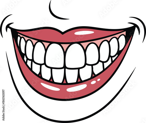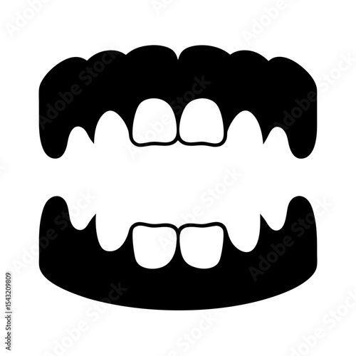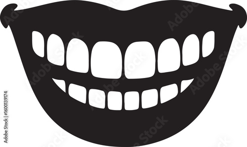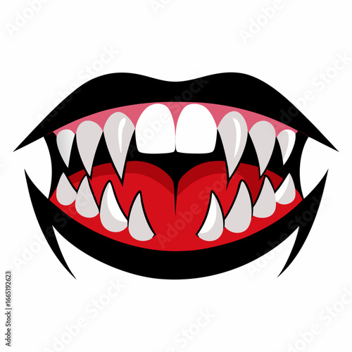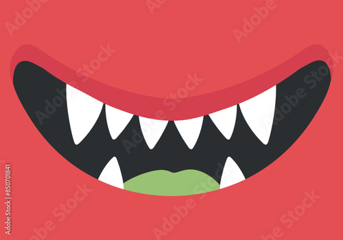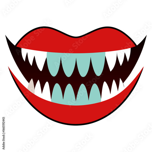 Вектор улыбки рта с зубами. Выражение лица страшного монстра Хэллоуина или персонажа джокера с жуткой зубастой ухмылкой, выделенной на белом фоне
