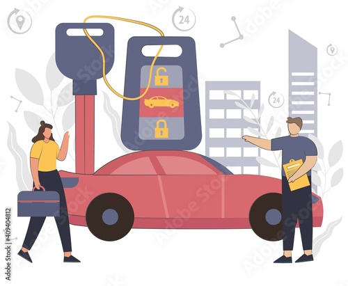 Мультяшные мужские персонажи-грузчики, загружающие картонные коробки и другие вещи в машину, векторная иллюстрация. Концепция услуг по перемещению перемещений для веб-баннера, страницы веб-сайта и т.д.