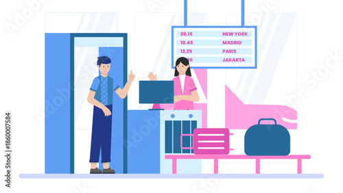 Процедура МРТ-обследования в клинике. Врачи, медицинские работники делают МРТ головы или головного мозга пациента мужского пола, плоская векторная иллюстрация. Магнитно-резонансная томография. Медицина и здравоохранение.