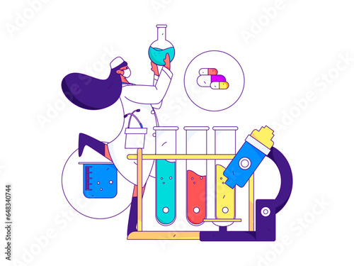 Магнитно-резонансное исследование. Врач делает МРТ головы или головного мозга пациентки женского пола, плоская векторная изометрическая иллюстрация. Магнитно-резонансная томография. Томография головы, лаборатория неврологии.