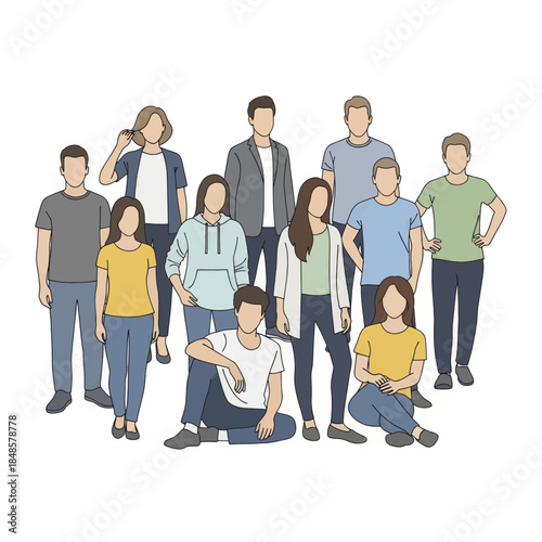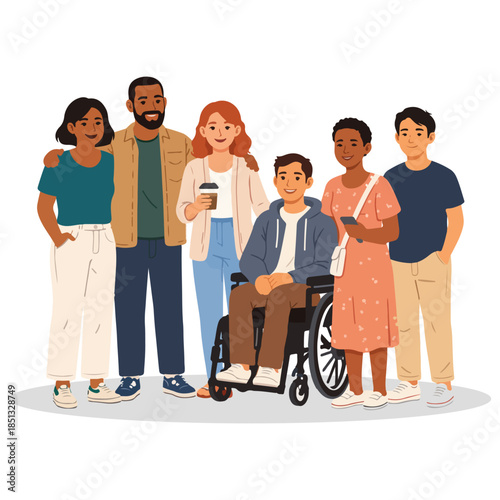 Многорасовая группа людей разного возраста с векторной иллюстрацией. Международное общество. Единство в разнообразии, сотрудничество, концепция дружбы