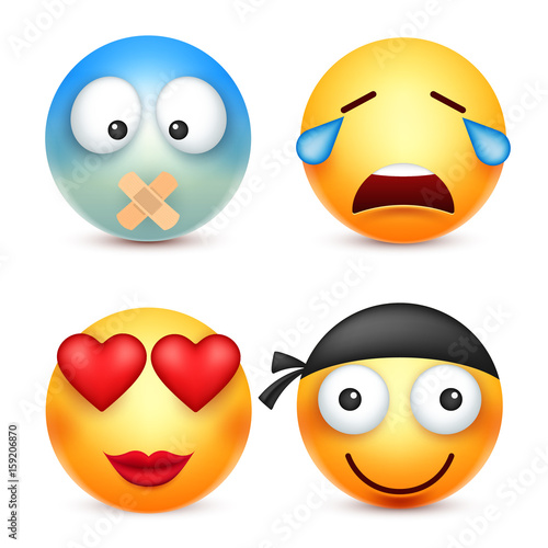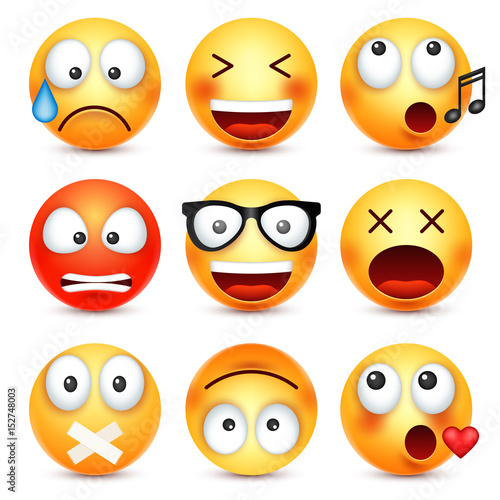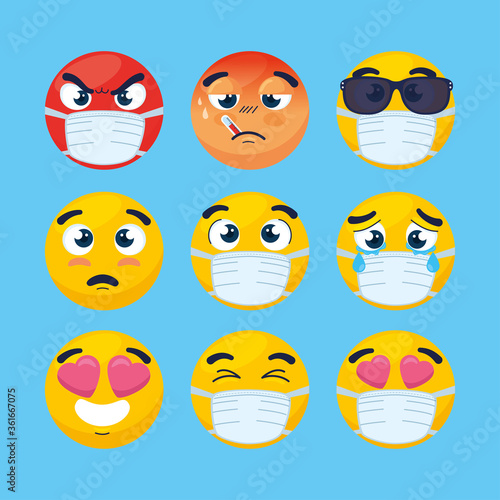 Набор значков музыкальных эмодзи. Векторная иллюстрация смайликов в наушниках, изолированных на белом фоне.