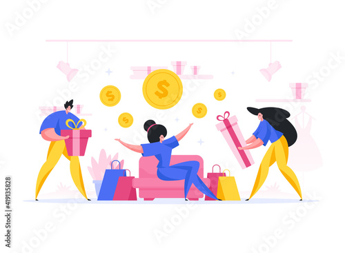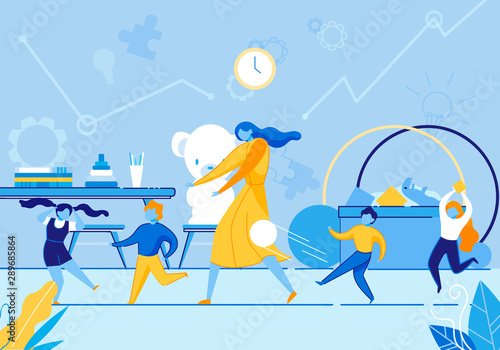 Шаблон баннера векторного плаката музыкального фестиваля с цветными мультяшными персонажами музыкантов, играющих на саксофоне, гитаре, контрабасе, валторне, трубе, скрипке и тромбоне.