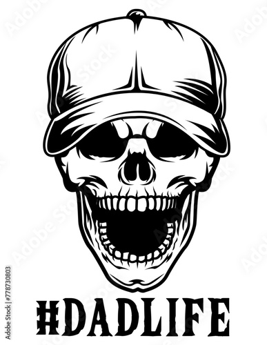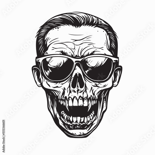Музыка - это жизнь векторного гранж-дизайна с черепом хипстера в очках с усами и бородой, слушающего музыку.