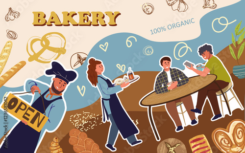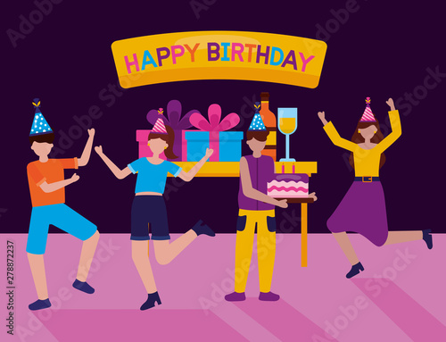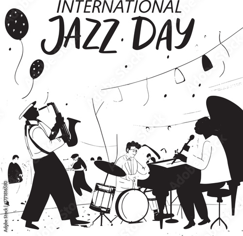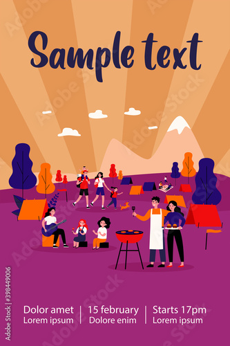 Музыкальная группа, выступающая на сцене панк-рок фестиваля векторная иллюстрация. Музыкант, исполнитель рок-н-ролла, исполняющий музыку и поющий песню перед восторженной аудиторией людей
