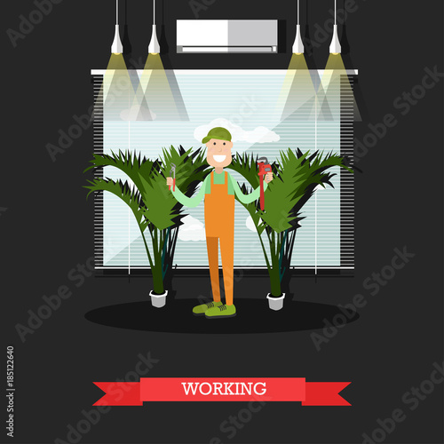 Векторная иллюстрация музыканта-трубача, молодого человека, играющего на трубе. Элемент дизайна в плоском стиле трубача.