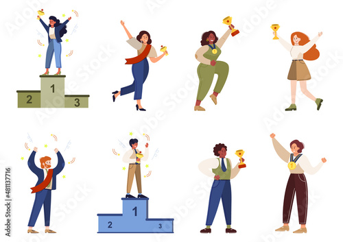 Набор иконок музыканта и певца. Векторная иллюстрация дизайна в плоском стиле музыкантов мужского и женского пола, играющих на гитаре, барабане, фортепиано, саксофоне, скрипке и певцах, поющих песни, изолированные на белом фоне