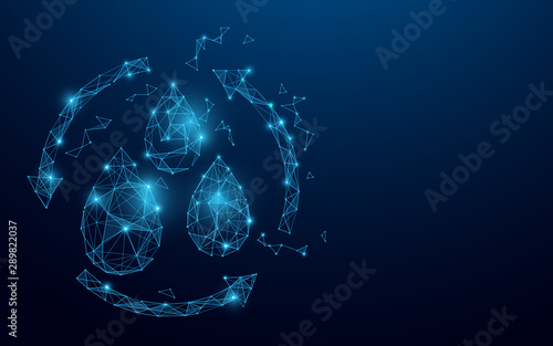 Векторный многоугольный художественный стиль мусульманских молитвенных рук с полумесяцем. Низкополигональная каркасная сетка с рассеянными частицами и световыми эффектами на темно-синем фоне. Шаблон баннера плаката поздравительной открытки.