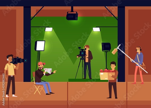 Миф, поддельные новости и факты, плоская векторная иллюстрация. Люди читают ложные новости из газет, социальных сетей, смотрят телепрограммы. Дезинформация, введение в заблуждение, дезинформация, мистификация, фабрикация информации.