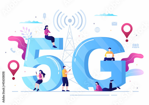 Вектор сетевой технологии 6g. Высокоскоростное беспроводное соединение. Концепция цифровой коммуникации, телекоммуникаций и глобального Интернета. Плакат с креативным номером и дизайном городского пейзажа
