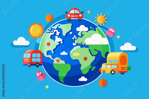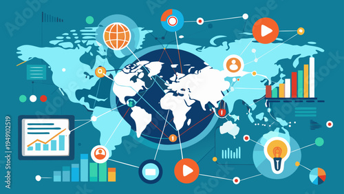 Векторная плоская иллюстрация новых технологий. Человеческий мозг, символ днк, лабораторные колбы для генетических химико-биологических исследований, глобус, компьютер, робот, гарнитура виртуальной реальности. Плакат о научно-технических инновациях.