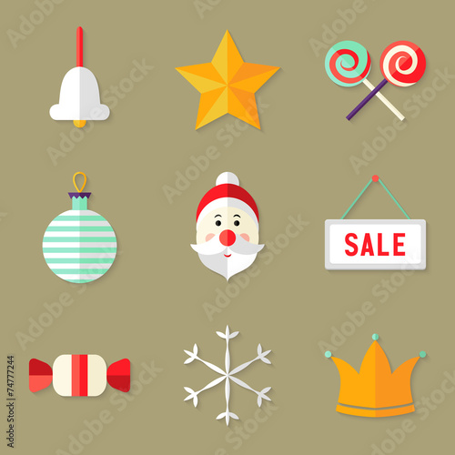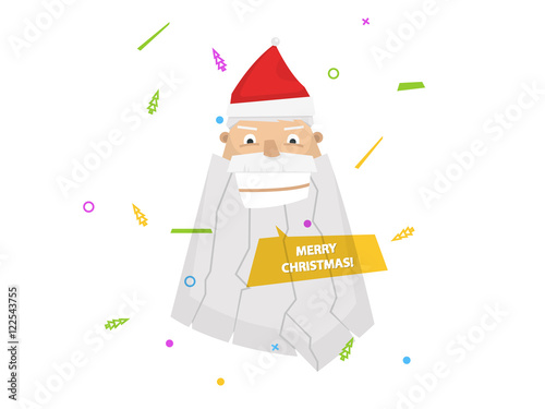 Плакат с новым годом с изометрической головой Санты, креативной рождественской елкой и празднично обернутой подарочной коробкой, иллюстрацией лакомств из леденцового тростника. Празднование зимних сезонных праздников и дизайн поздравительных открыток