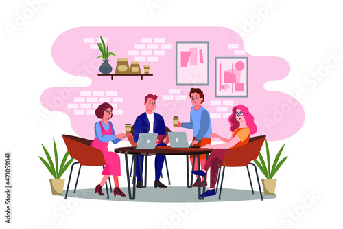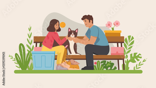 Вектор новорожденного ребенка. Иллюстрация к семейному празднику. Молодые мать и отец празднуют роды в кругу друзей. Сцена. Счастливая родительская забота о новорожденном ребенке. Отцовство, материнство и взаимоотношения