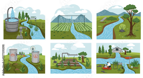 Векторная иллюстрация женщины-журналиста радиопередачи в наушниках с микрофоном, мужчины-диджея радио в наушниках, работающего перед микрофоном и компьютером в радиостудии. Дизайн в плоском стиле.