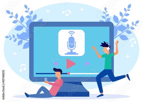 Онлайн-новости и репортажи, векторная иллюстрация. Средства массовой информации, прямые трансляции, последние мировые новости и концепция заголовков с журналистами, репортерами, героями новостей для веб-баннера, страницы веб-сайта и т.д.