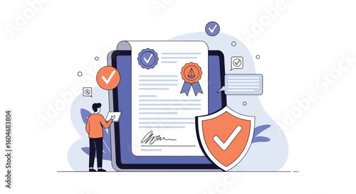 Векторная иллюстрация большого телефона с функцией NFC, используемого в качестве банковской карты с отпечатком пальца на экране, крошечные люди делают денежный перевод. Бесконтактные платежи, концепция технологии ближней связи.