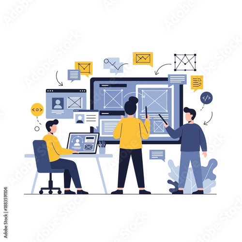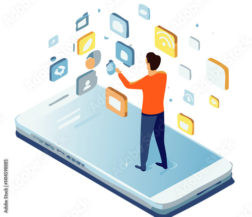 Художник NFT продает цифровое произведение искусства коллекционеру произведений искусства за криптовалюту, плоская векторная иллюстрация. Криптоискусство. Технология блокчейна NFT.