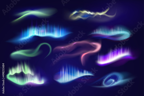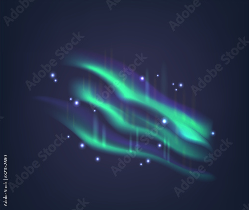 Реалистичное 3d северное сияние, северное сияние, векторная иллюстрация, изолированная на прозрачном фоне. Удивительное полярное сияние на ночном темном небе, природные явления.