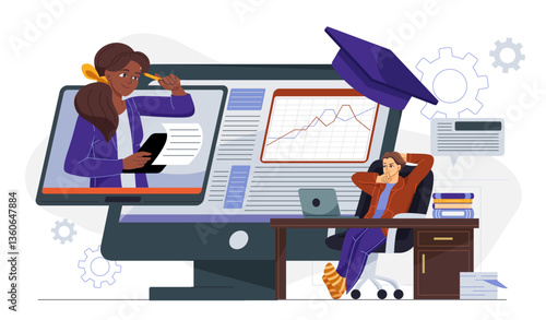 Огромный офисный дневник и люди из малого бизнеса составляют расписание и заметки, чтобы вовремя выполнять задачи. Бизнес и финансы, концепция управления временем и планирования для веб-баннера, страницы веб-сайта и т.д.