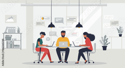 Люди в полных защитных костюмах проводят профилактическую дезинфекцию офиса, векторная плоская иллюстрация. Предотвращение распространения коронавирусной болезни COVID-19. Услуги по очистке и дезинфекции от коронавируса.