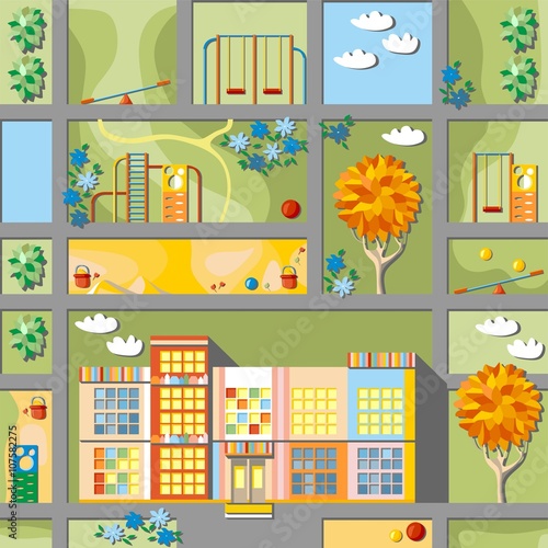 Векторный набор концептуальных плакатов интерьера офисного здания, баннеров, фонов. Офисное оборудование, мебель и принадлежности в плоском стиле.