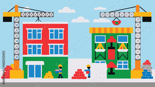 Векторный набор плакатов, баннеров с современным интерьером рабочего пространства с мебелью, компьютерной техникой, канцелярскими принадлежностями, машиной для приготовления пищи, автоматом для приготовления кофе. Концепция офисной жизни, дизайн в плоском стиле.