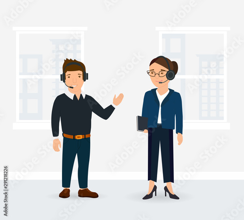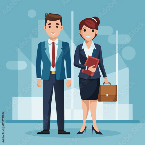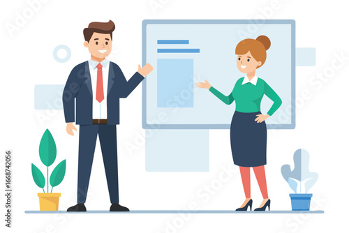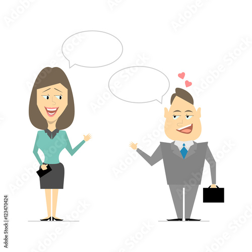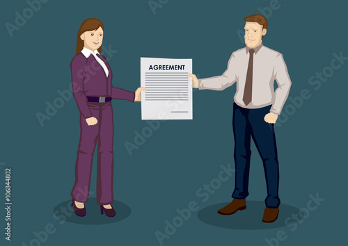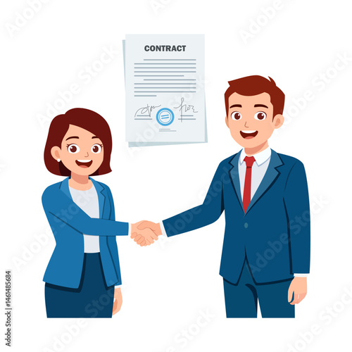 Векторная иллюстрация бизнесмена и бизнесвумен, заключающих выгодную сделку и пожимающих друг другу руки. Элементы дизайна офисных людей в плоском стиле, значки, выделенные на белом фоне.